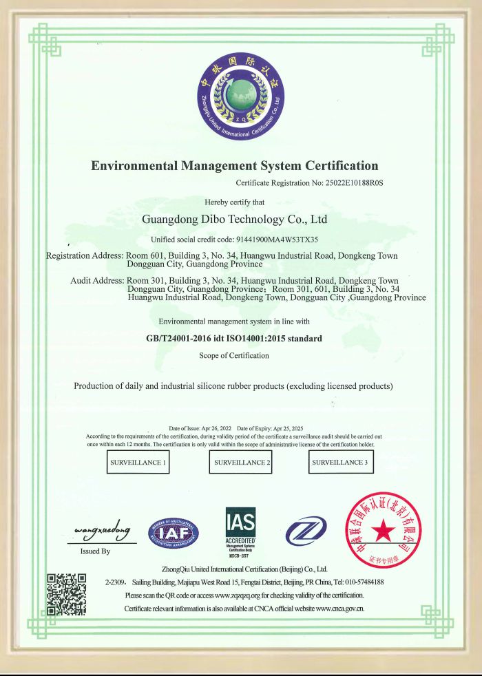 廣東帝博科技有限公位于2019年起施行每年檢測認證報告,由于硅膠制品行業(yè)屬于環(huán)保安全行業(yè),客戶的需求以及反饋都決定我們的實力,目前我司已認證ISO9001、ISO14001、ISO45001、迪士尼認證、FDA、ROHS、LFGB、CPC等一系列檢測認證