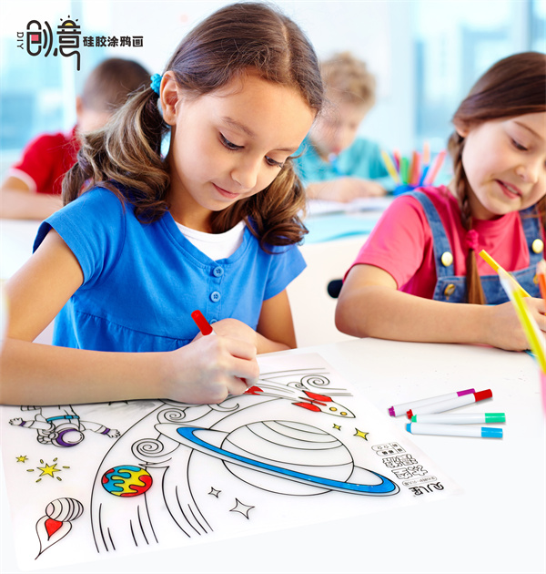 硅膠涂鴉畫主要采用兒童教育方式提升兒童動手能力,以及親子教育知識學習等效果,培養(yǎng)兒童的認知以及專注力以及藝術(shù)創(chuàng)造能力等,產(chǎn)品主要采用環(huán)保硅膠片結(jié)合轉(zhuǎn)印印刷底色方式提供一定的表面圖案知識,經(jīng)過水性水彩筆涂鴉達到創(chuàng)作的效果!